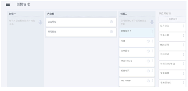 進入"管理後台"-->"側欄管理"-->"新增版位"
